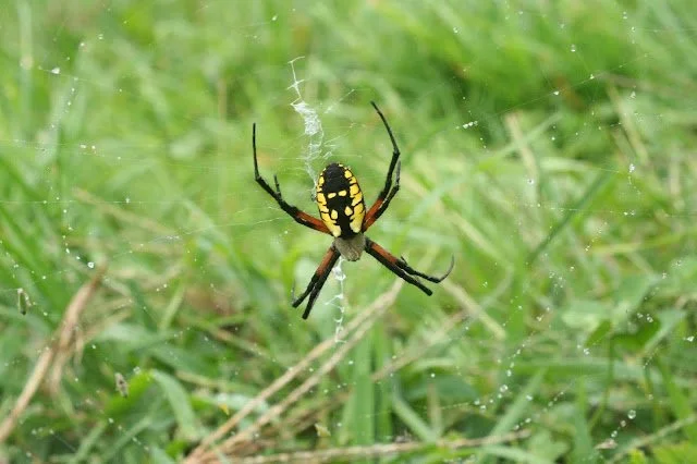 A couple weeks ago we found a very large yellow and black spider making her web across some spinach plants in our garden. We learned she was an Argiope aurantia or Araña Amarilla de Jardín (Yellow Garden Spider). E.B. White describes in detail how Carlota spins her webs and catches her food. Reading this peaked our curiosity about this spider's web and also helped us to describe our observations in Spanish.